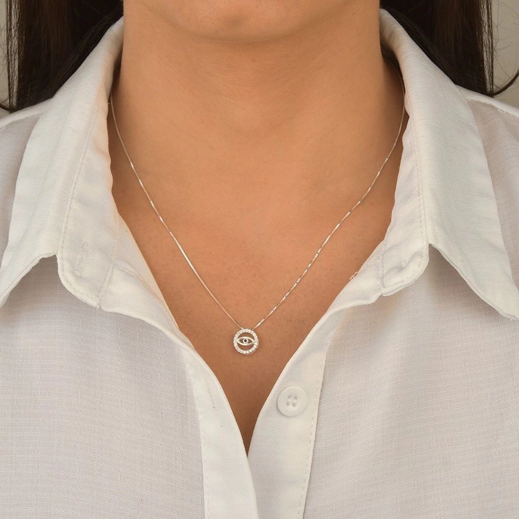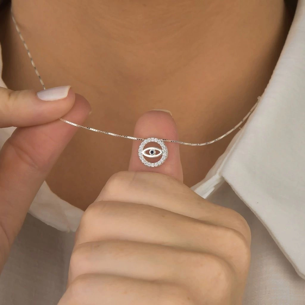 Delicada e sofisticada, o Colar Olho Grego Cravejado de Prata é perfeito para quem ama acessórios que trazem proteção e estilo. Feito em Prata 925 e com um olho grego cravejado de zircônias, essa peça afasta energias negativas com muito brilho.