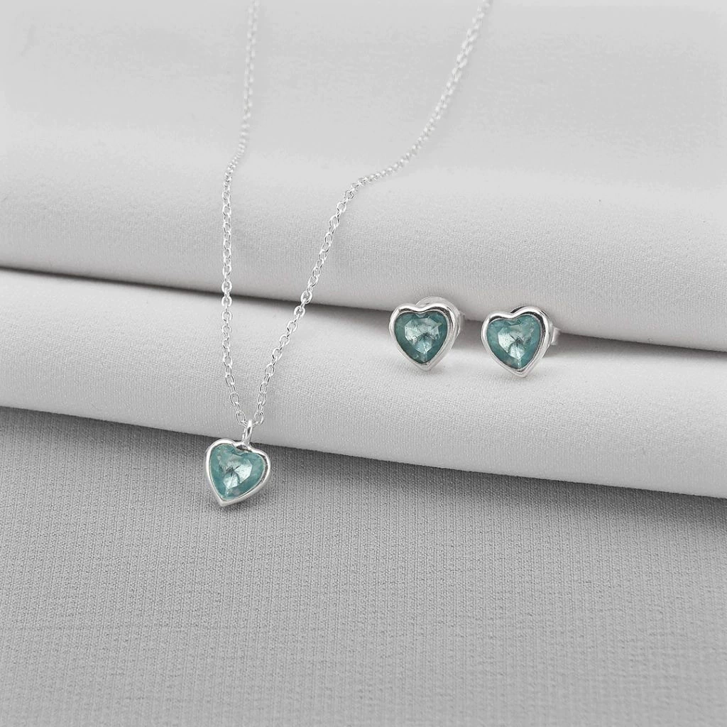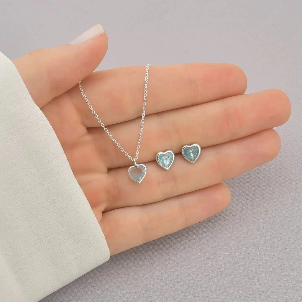 Conjunto Ponto de Luz Coração Azul Claro de Prata