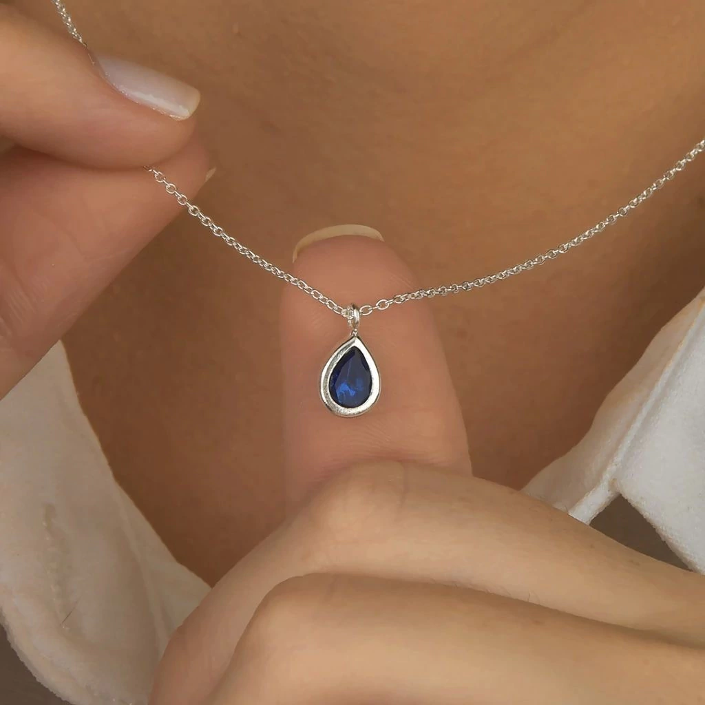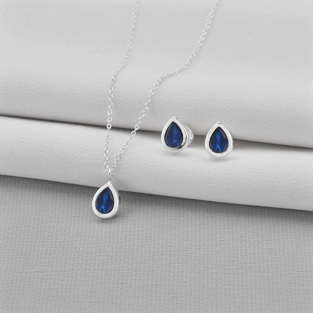 Delicada e sofisticada, o Conjunto Ponto de Luz Gota Azul Escuro de Prata é perfeito para quem ama acessórios românticos e elegantes. Feito em Prata 925 e com um cristal azul escuro em formato de gota, essa peça ilumina o colo com um brilho especial.
