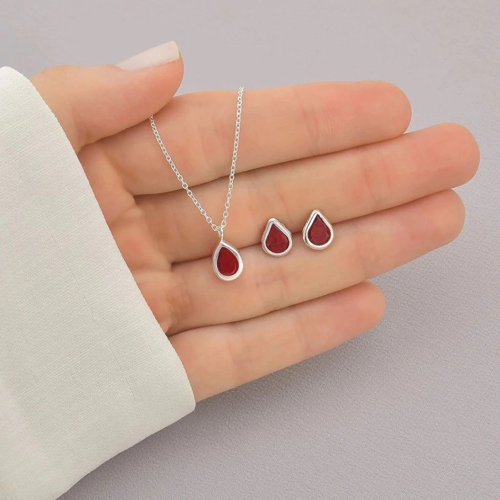 Delicada e sofisticada, o Conjunto Ponto de Luz Gota Vermelho de Prata é perfeito para quem ama acessórios românticos e elegantes. Feito em Prata 925 e com um cristal azul escuro em formato de gota, essa peça ilumina o colo com um brilho especial.