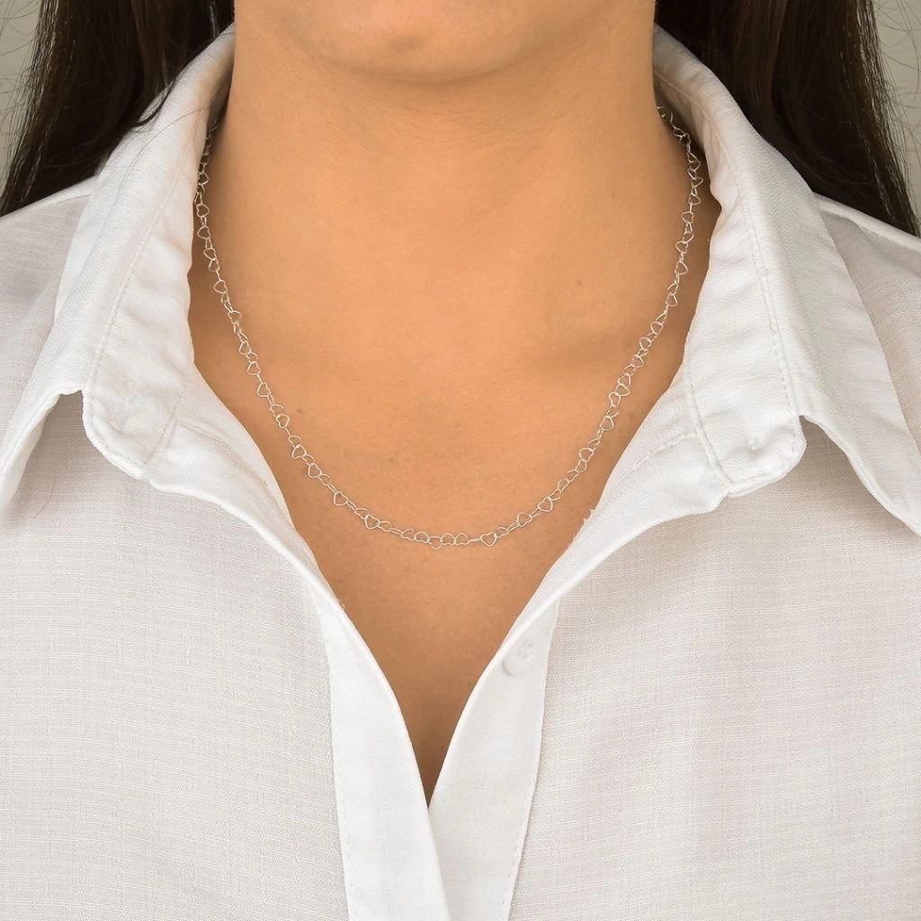 Delicada e sofisticada, a Corrente Elo Coração Fio 040 é perfeita para quem ama acessórios românticos e elegantes. Feita em Prata 925 e com elos em formato de coração, essa peça ilumina o colo com um brilho especial.